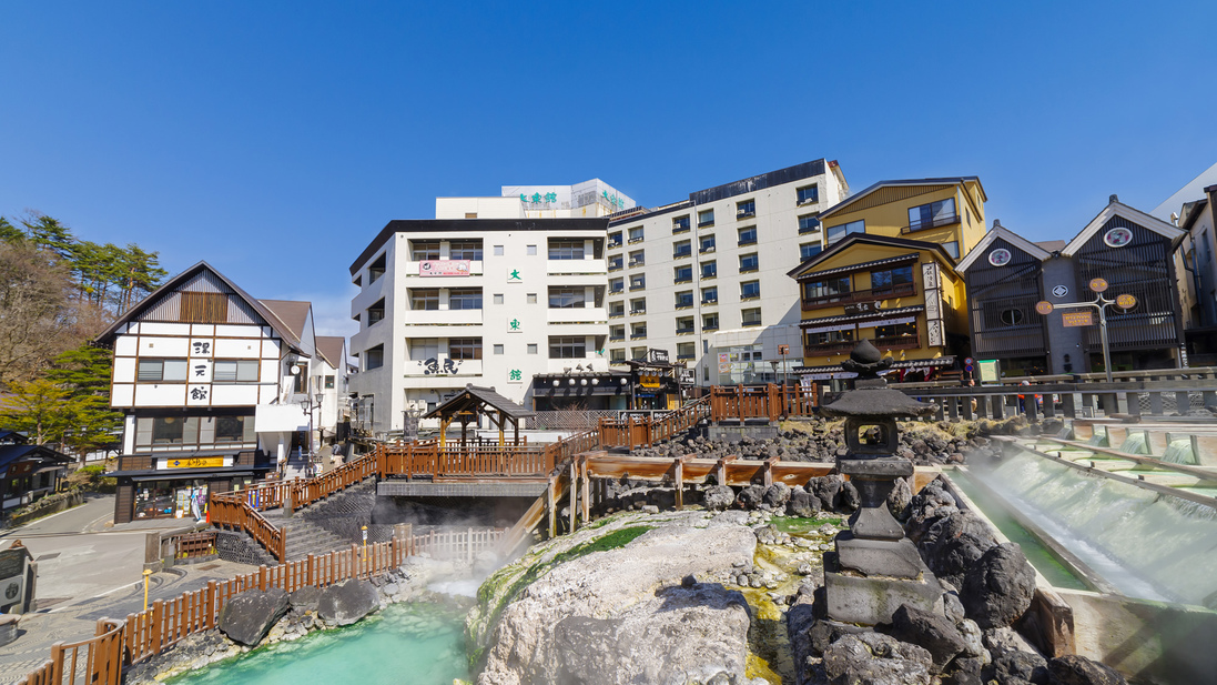 湯畑源泉100%かけ流し温泉と地元食材を使った料理が自慢♪草津温泉の中心「湯畑」に寄り添う老舗旅館